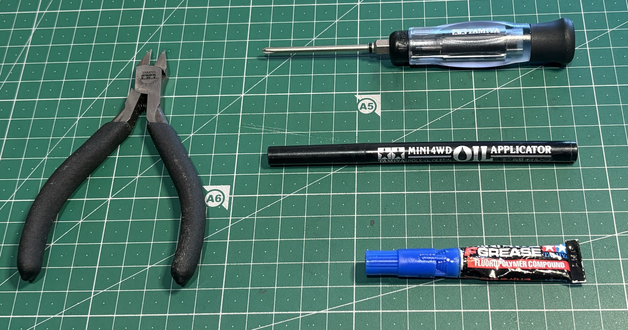 今回は素組(改造パーツ無しで組み立てる事)でも速く走れるような組み立てポイントと工具をご紹介して行きます。