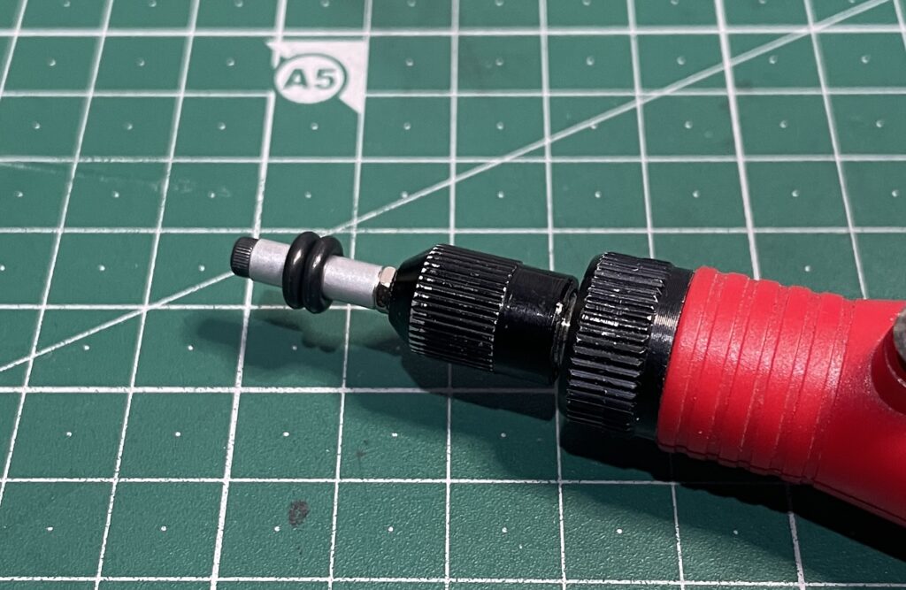 簡単に説明すると、「Oリングを削り、径をΦ5.1~5.2mmにする。その後半分の長さにカットして、フレキ軸部に取り付ける。」この流れで説明して行きます。