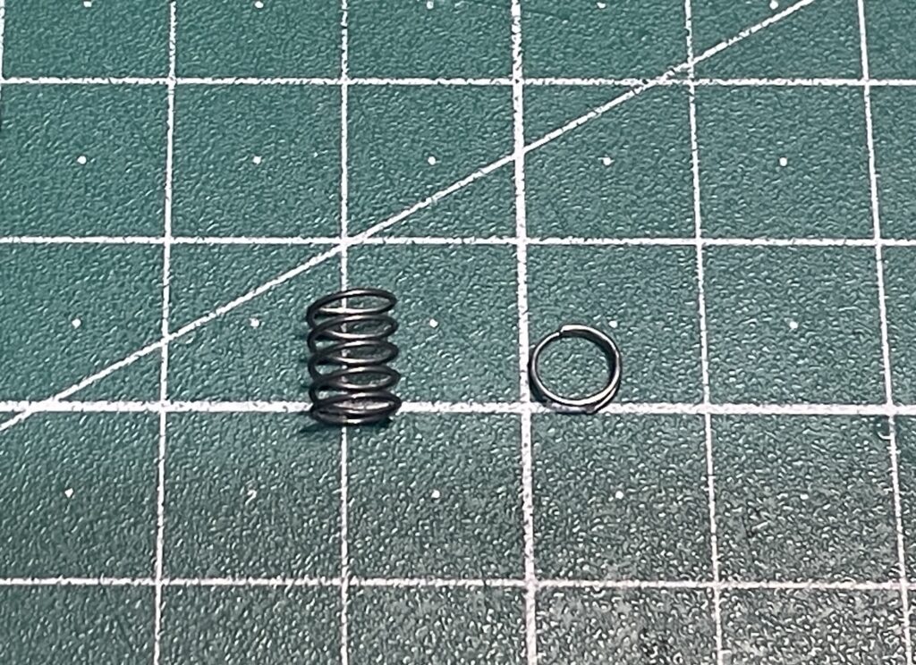 この時、バネの長さが少し長いので、1.5巻き程カットしてみて下さい。バネカットは、100均等のニッパーを使ってカットして下さい☆後は、グリスを塗って完成です☆