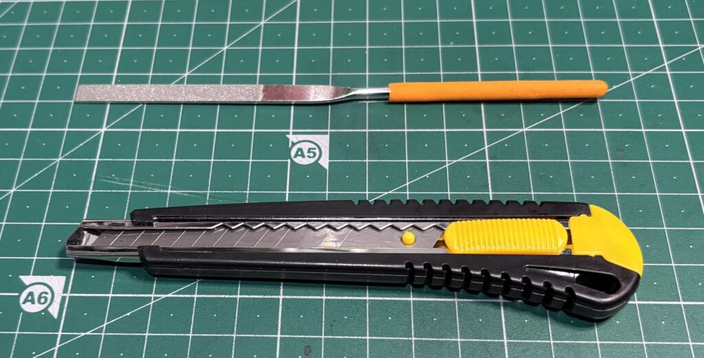 ヤスリを使いOリングの外径を削り、 Φ5.1~5.2mmにします。ペラタイヤを作るのと同じ感覚で削れるかと思います。