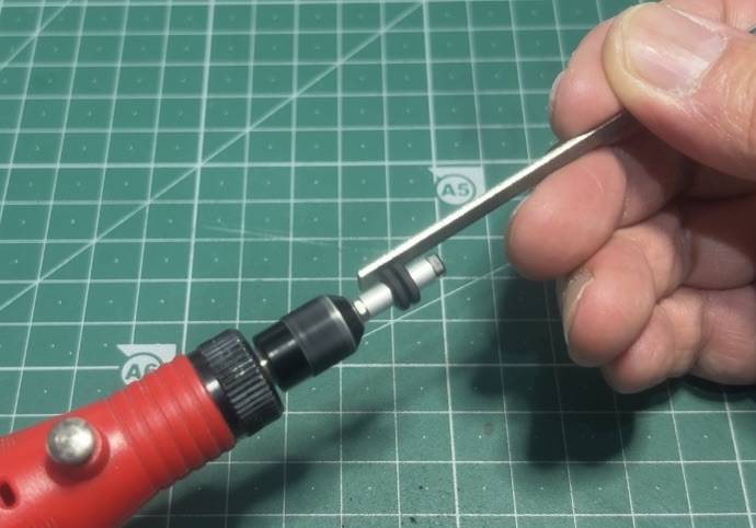 それをリューターに取り付けます。 回転させて軸振れがないか確認します☆