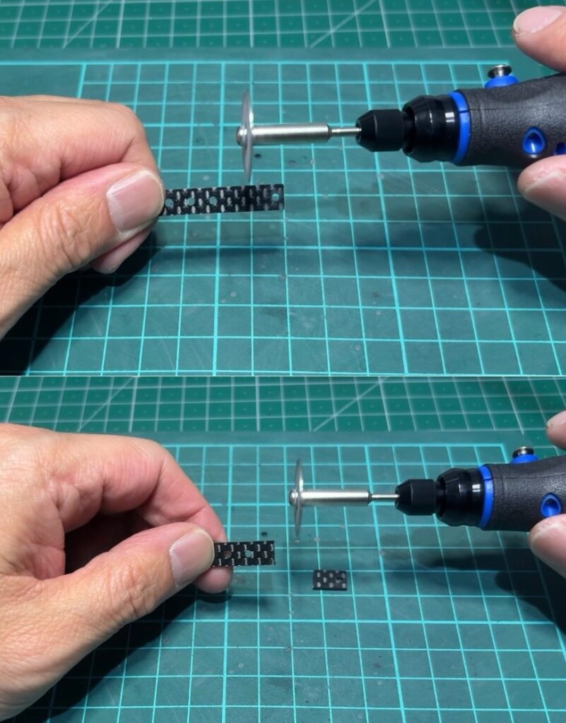 まずは、皿ビスを使う際に必須となる「皿ビス加工」。カーボンプレート等に加工する場合は少しパワーが欲しい所ですが、、、コチラは全然問題なし!!